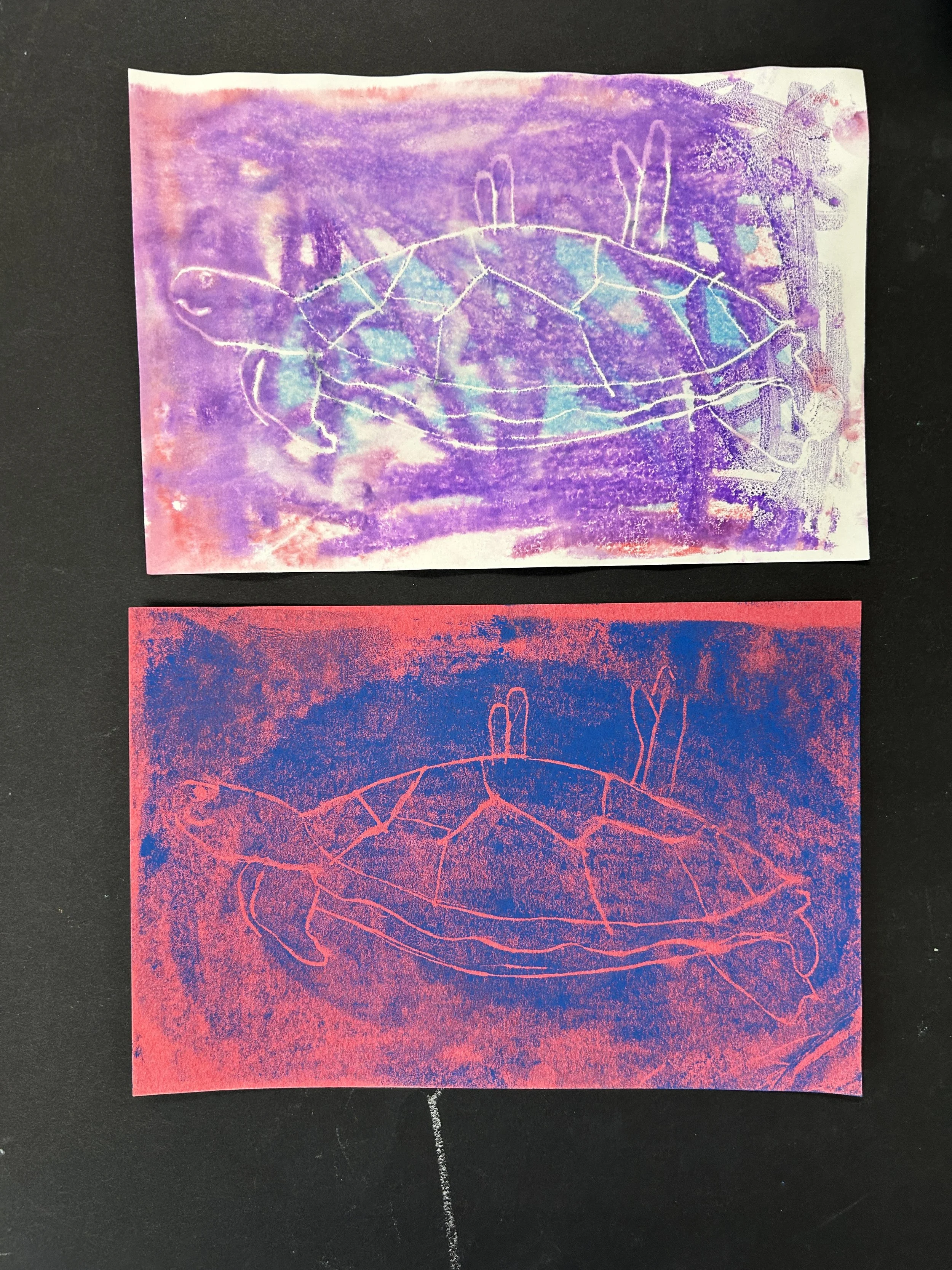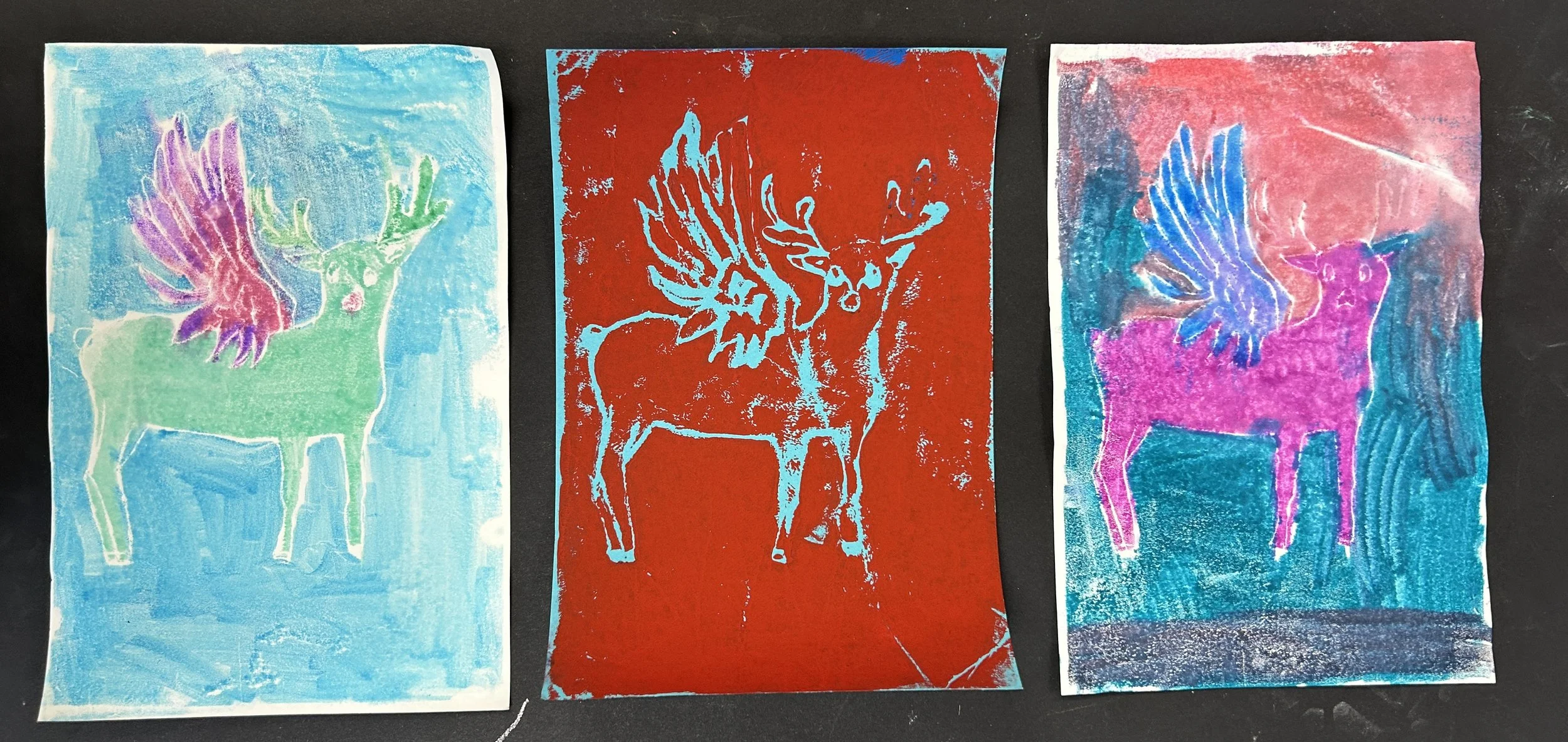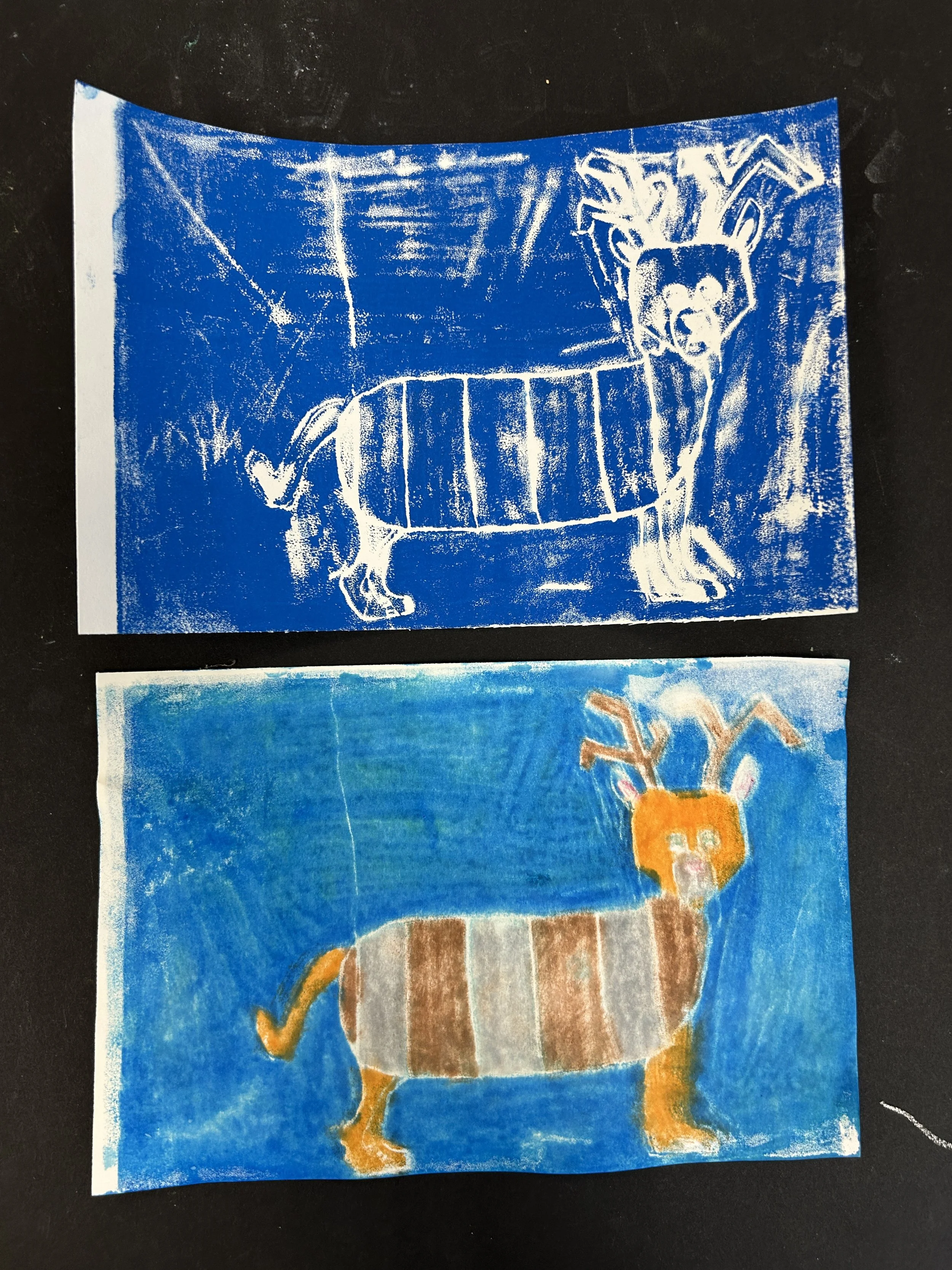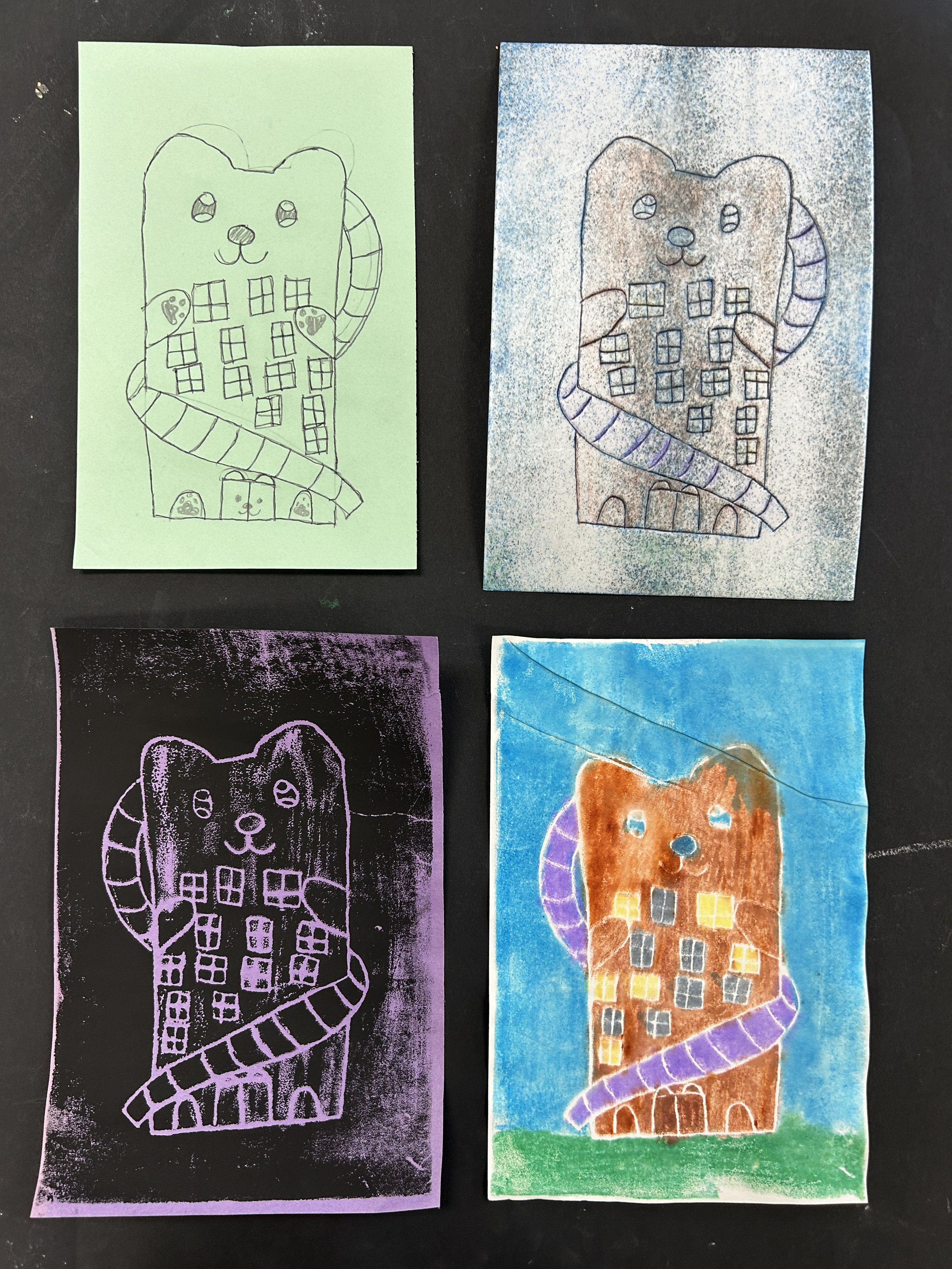 4th Grade printmaking unit using styrofoam, markers, and ink. One class created their own architecture design and another created their own mythical creature.