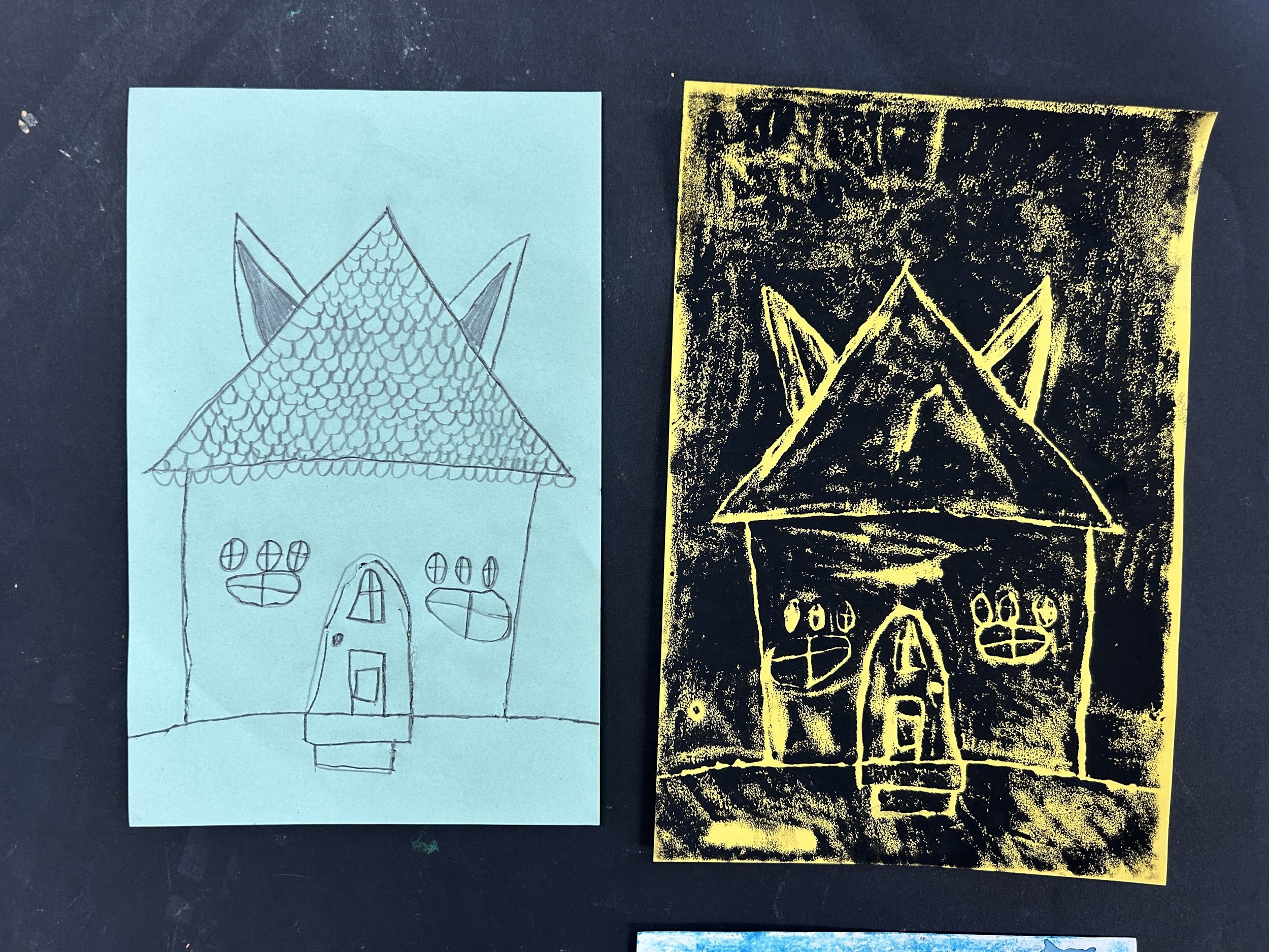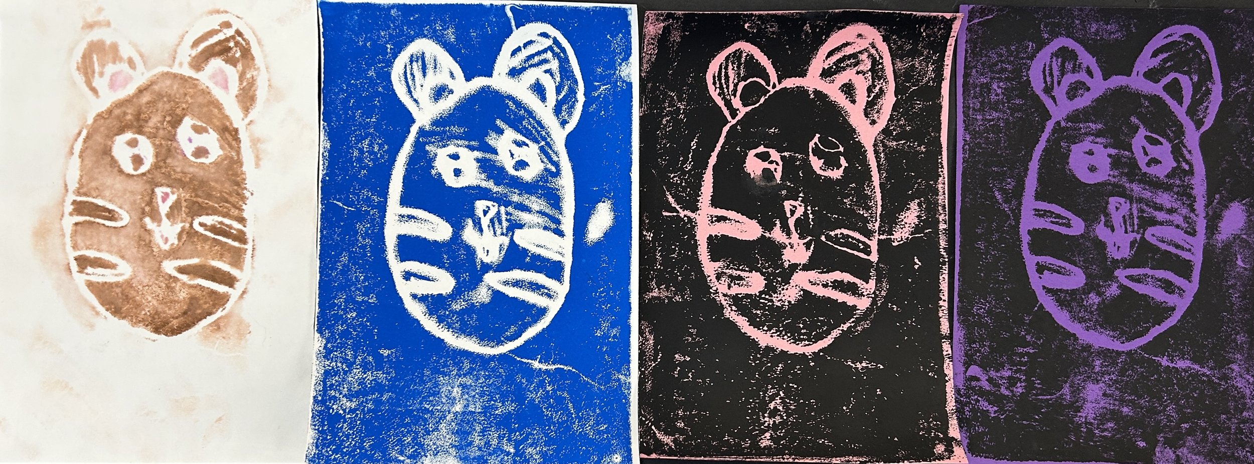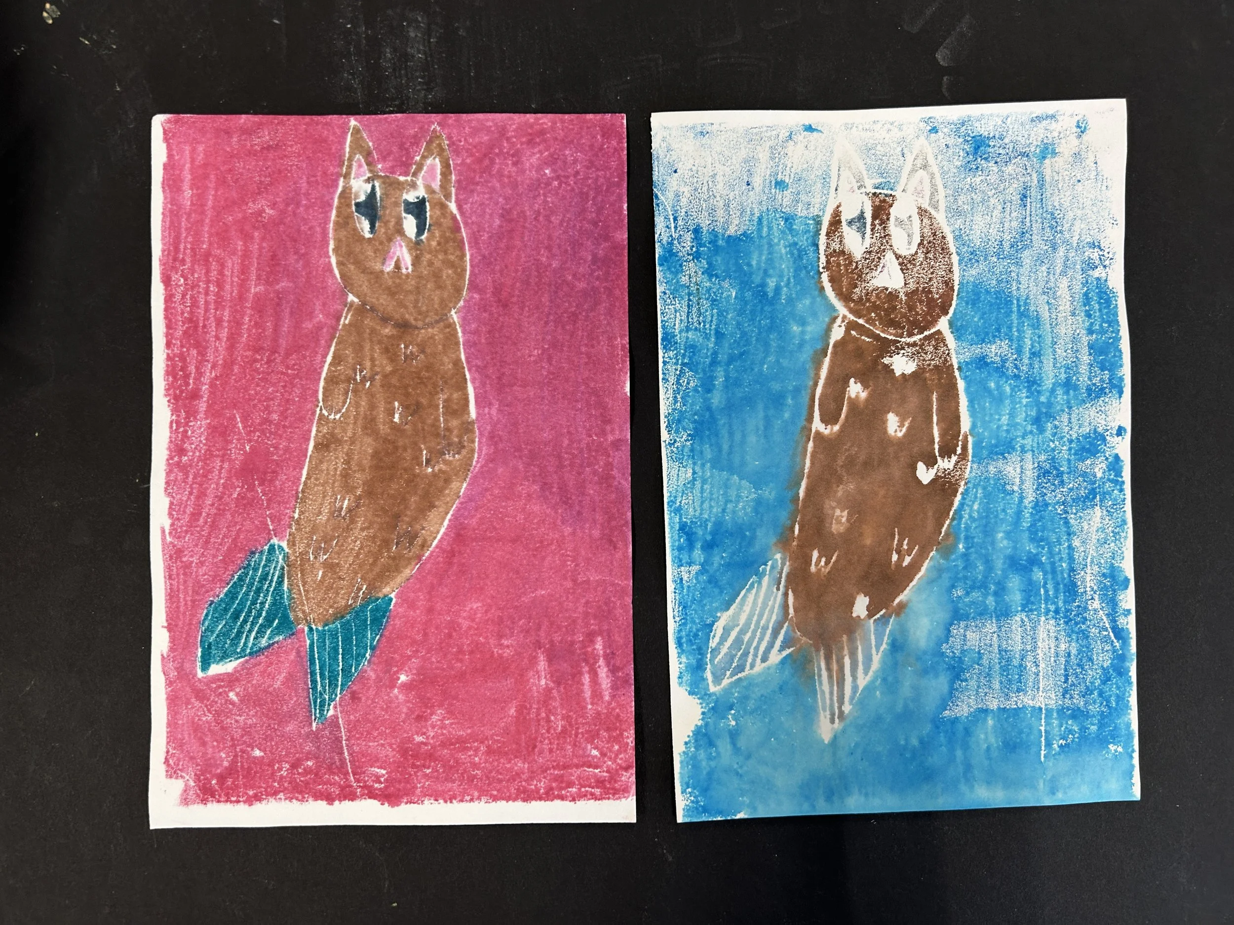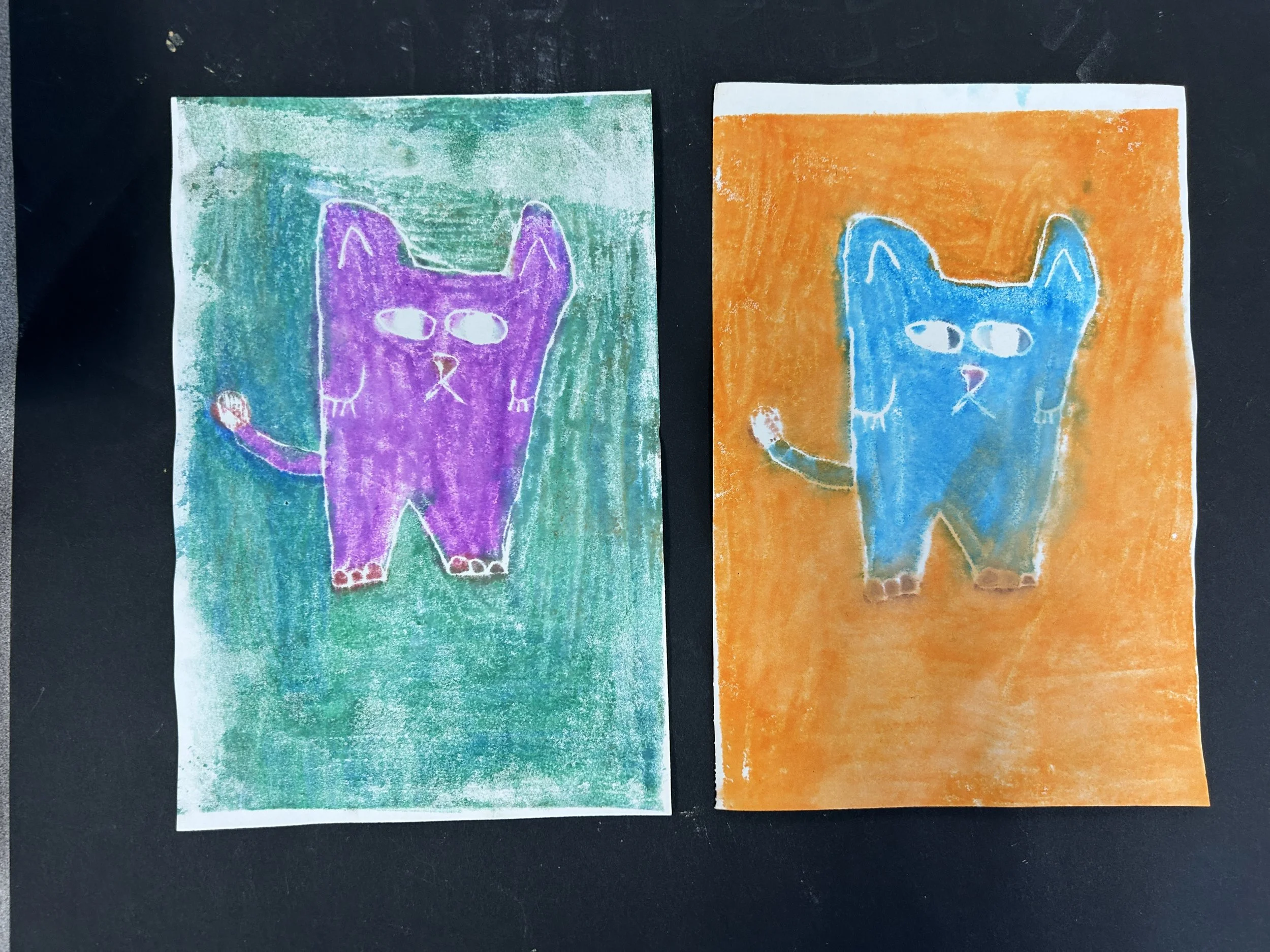 4th Grade printmaking unit using styrofoam, markers, and ink. One class created their own architecture design and another created their own mythical creature.