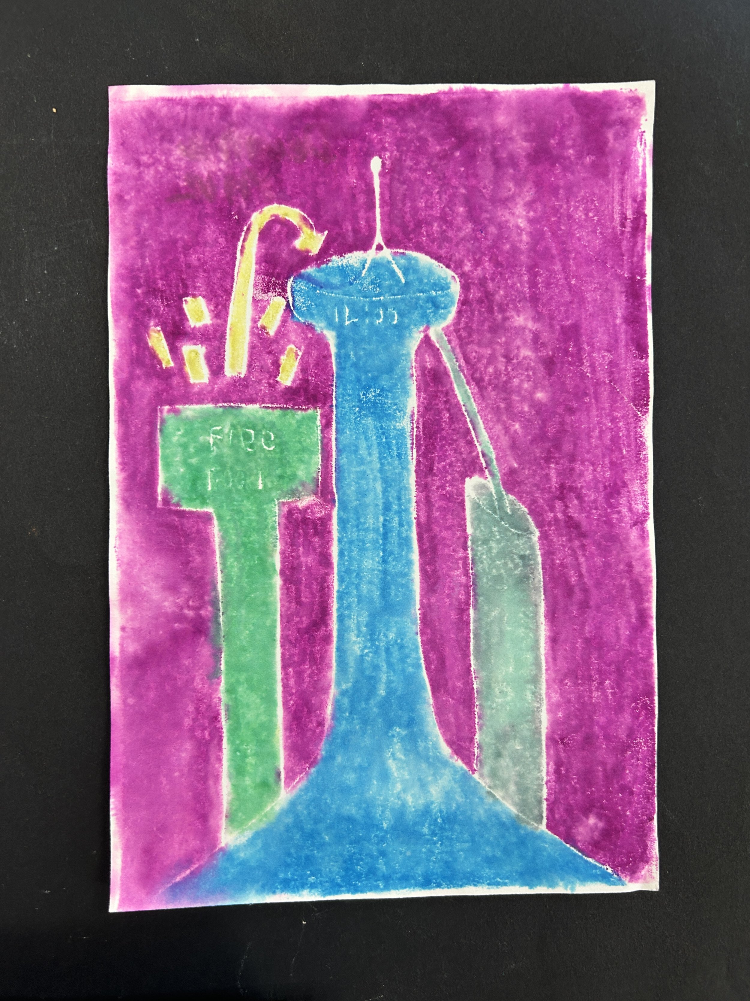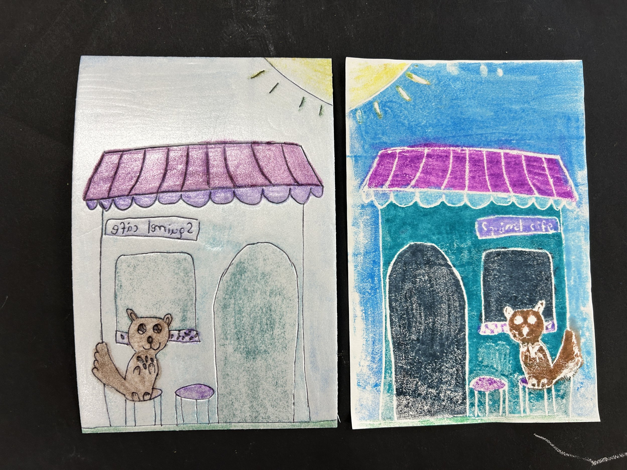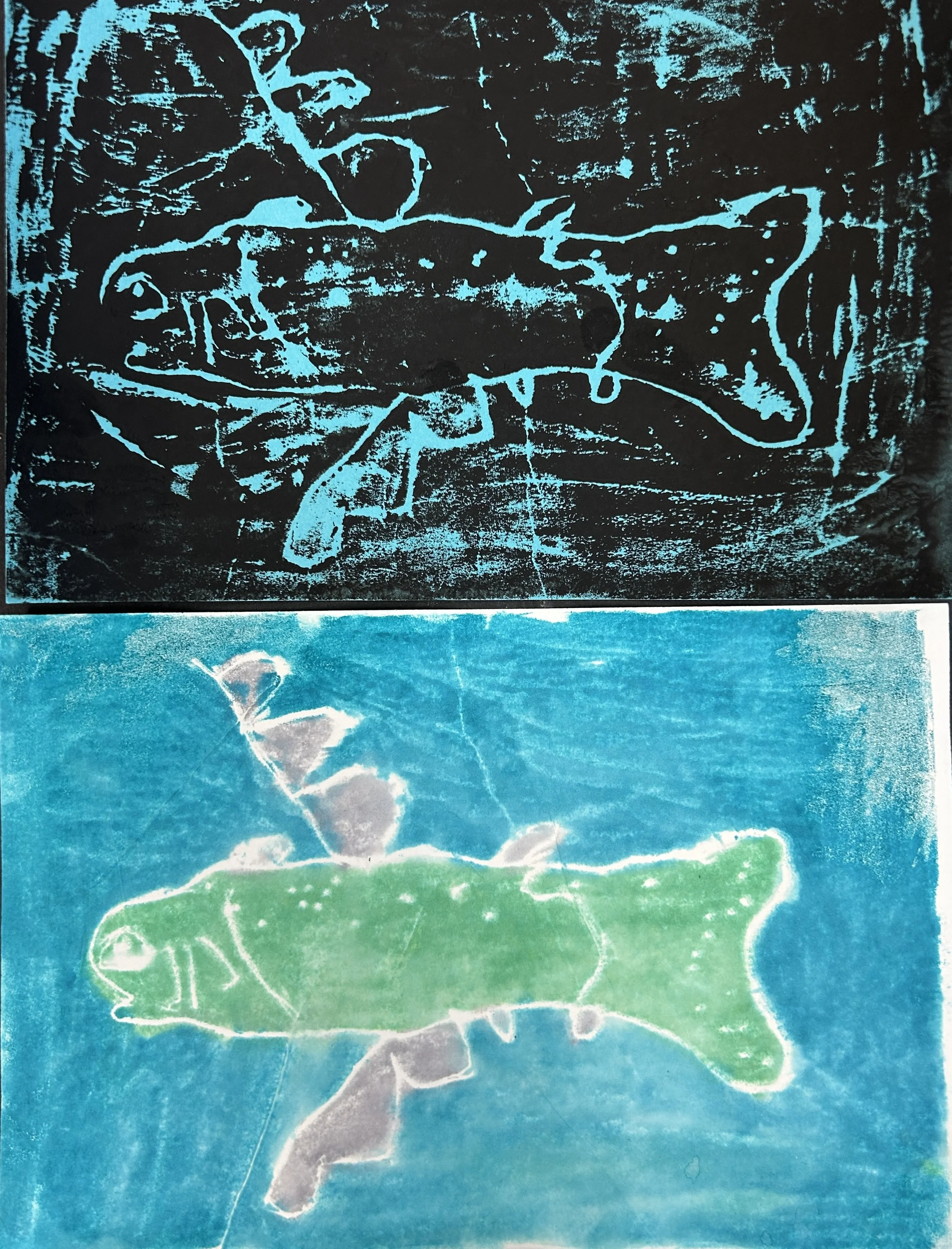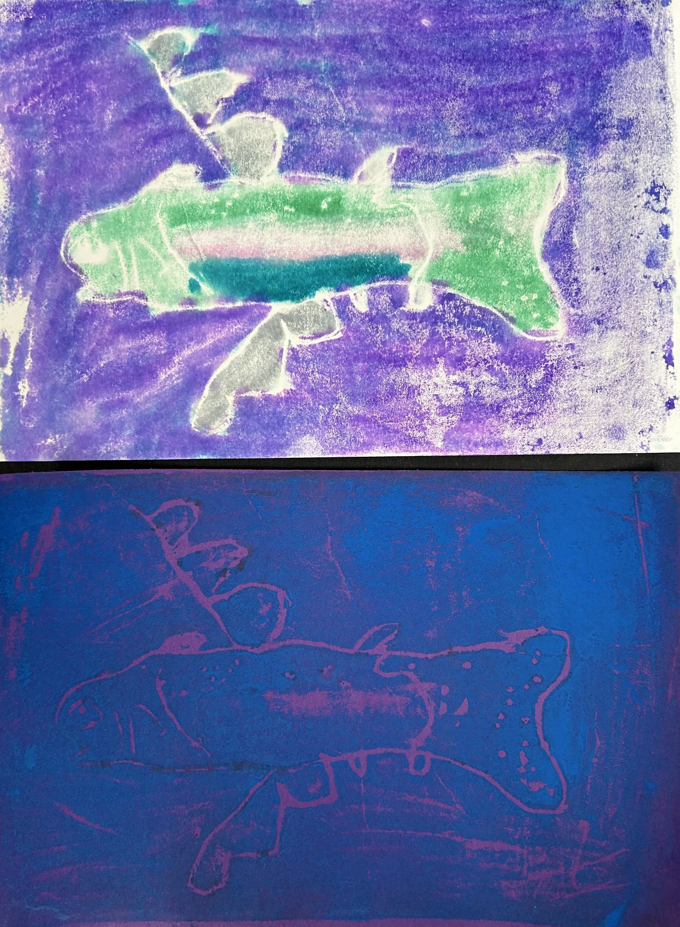 4th Grade printmaking unit using styrofoam, markers, and ink. One class created their own architecture design and another created their own mythical creature.